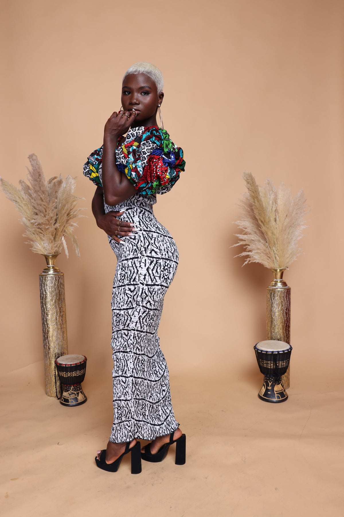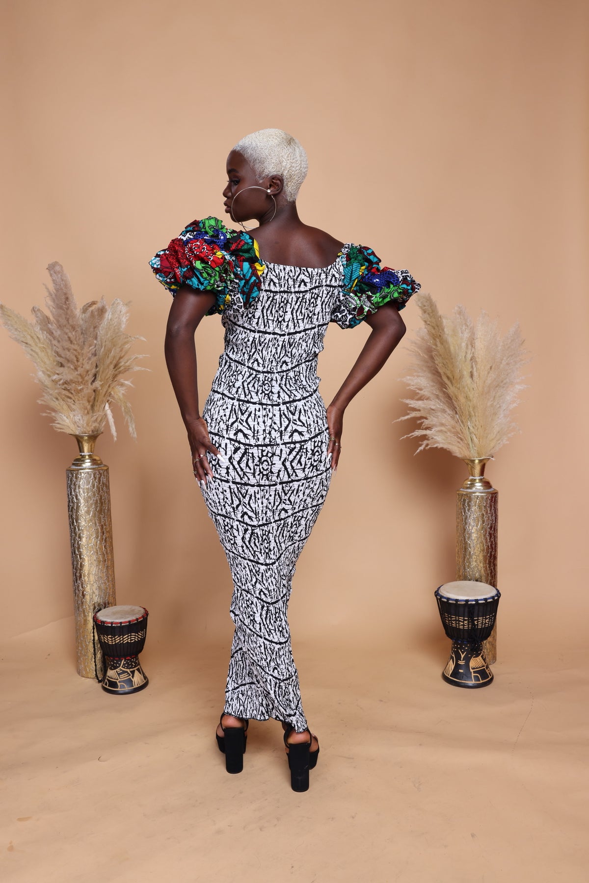 African smoked puffy sleeves body-con dress.