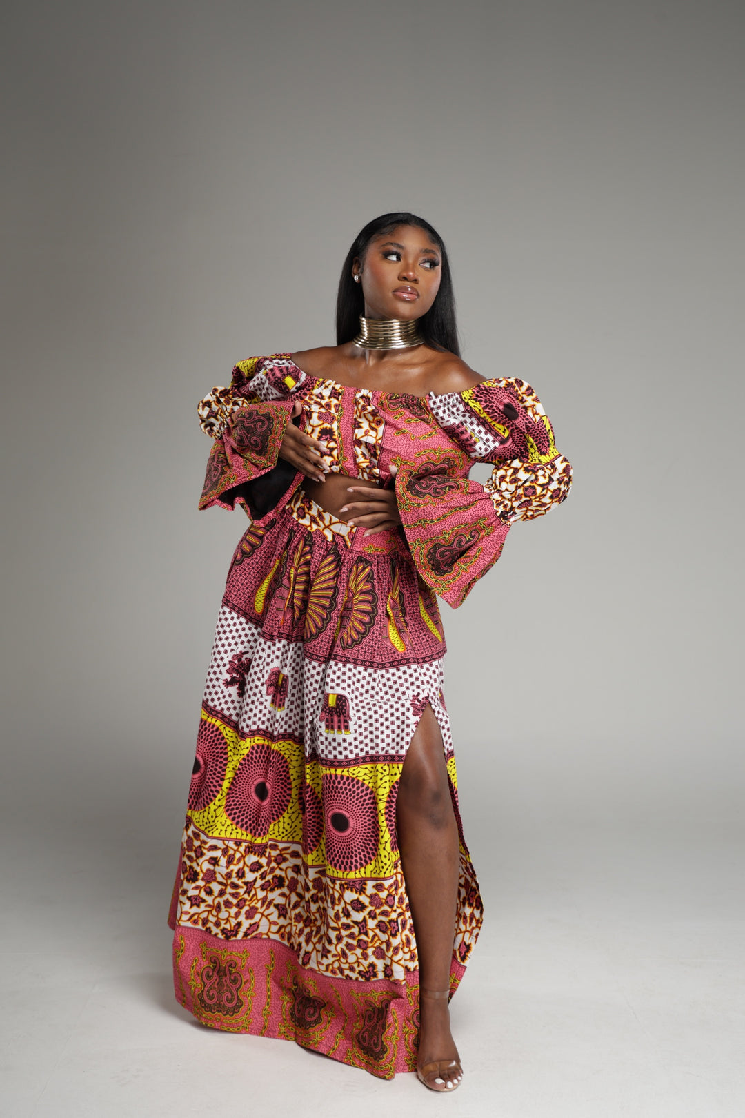 African Print Long Skirt, Long Sleeve Crop Top set.❤️🔥