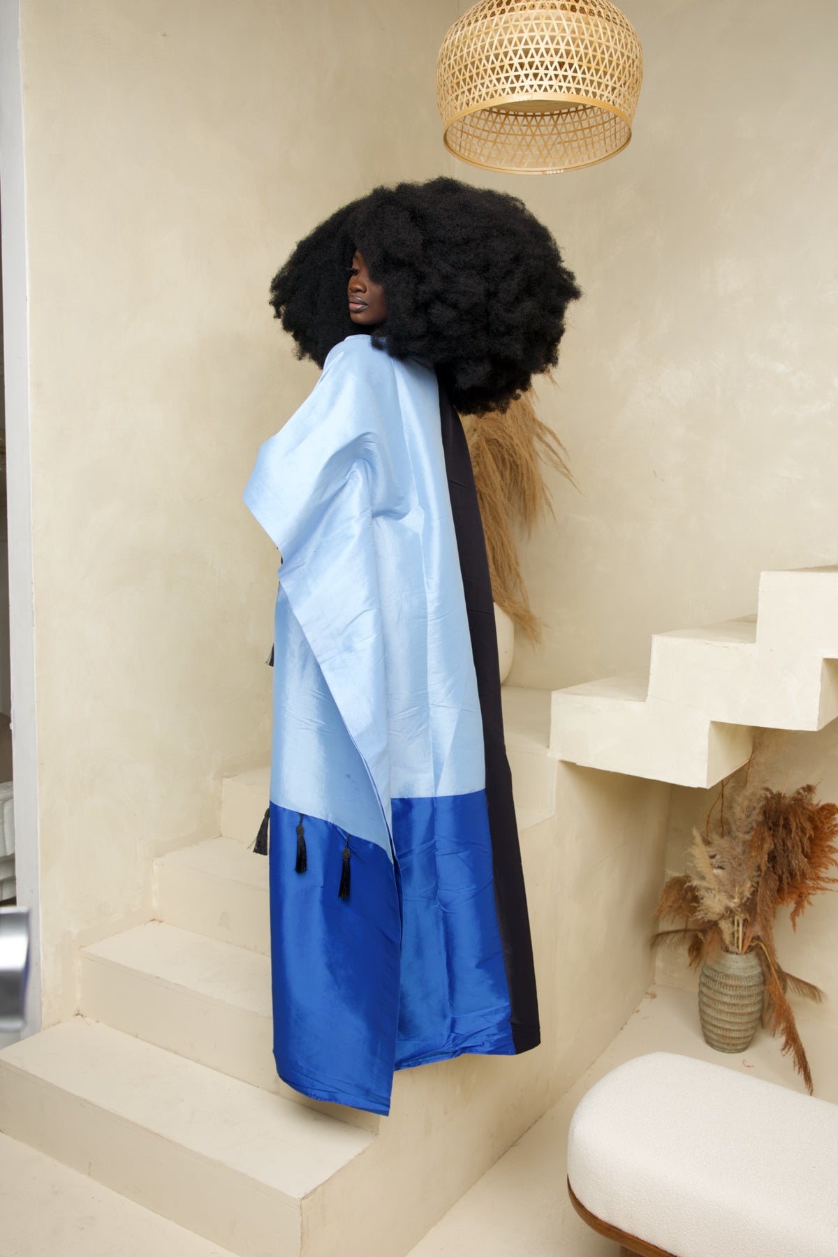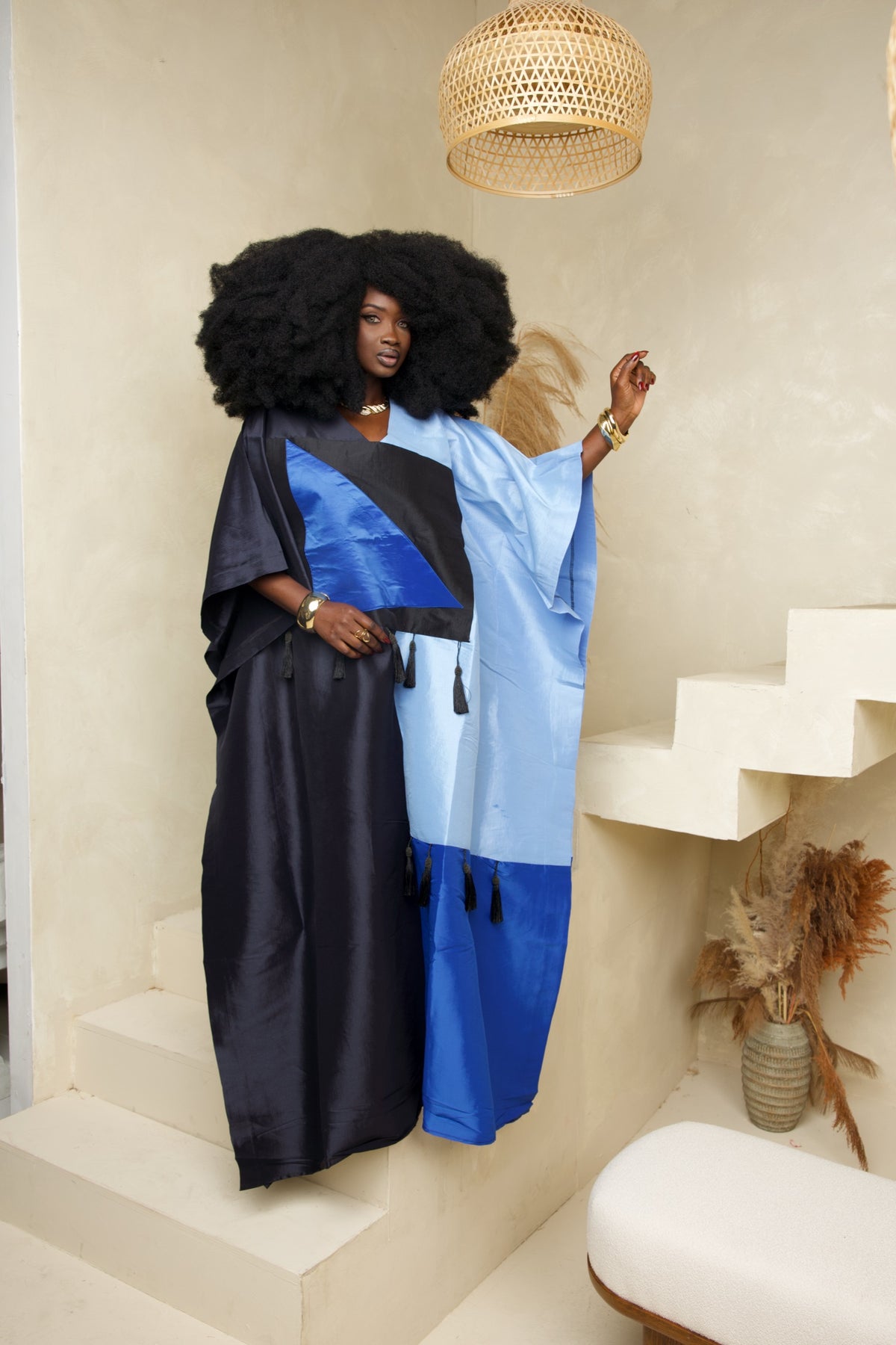 Delicate tassel details adorn the front, adding a touch of movement and artistry, while the wide sleeves enhance its dramatic flow. Lightweight yet structured, this gown is designed to flatter every body type, allowing you to move with grace and confidence.