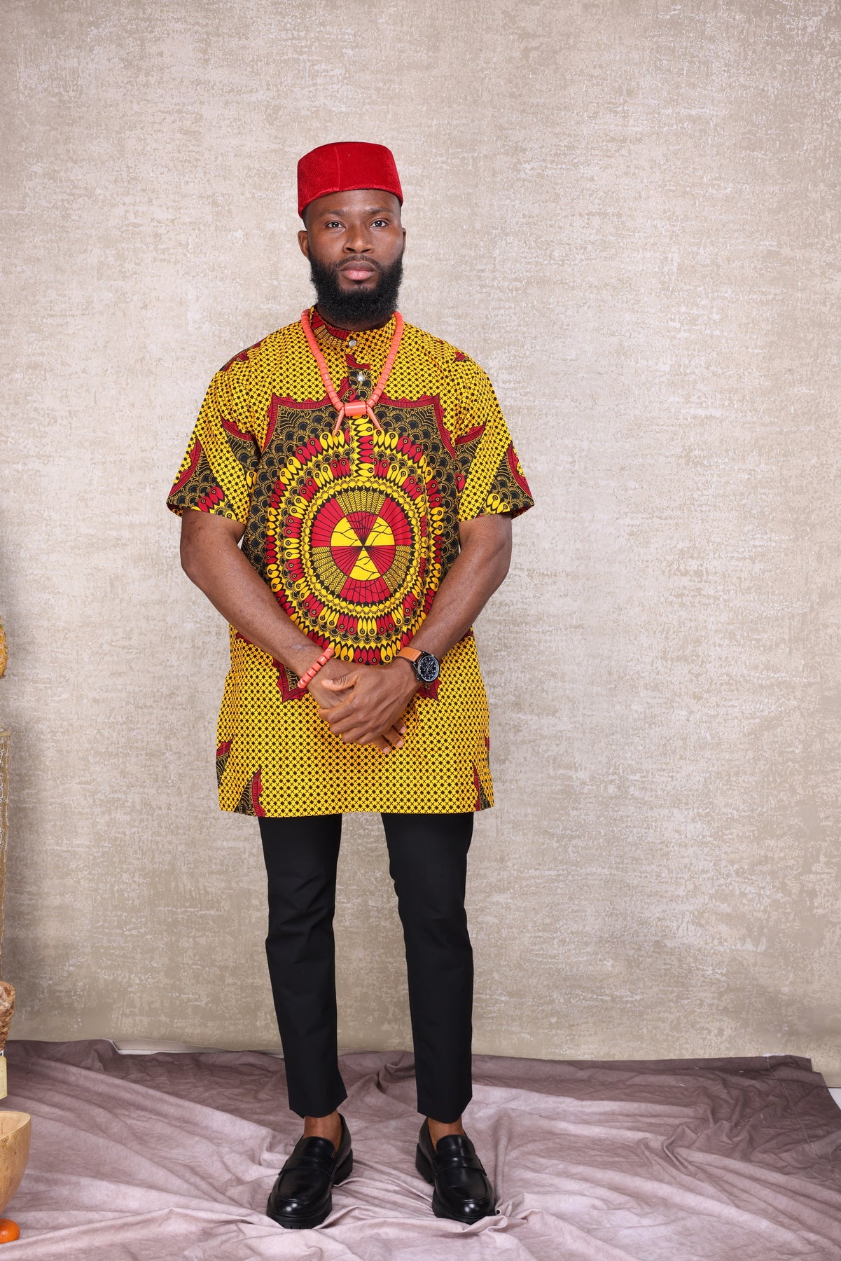 This is a handmade classy African print shirt for men, it's vibrant colors and fitting makes you more elegant, classy, charming, confident and shows your masculine features.
