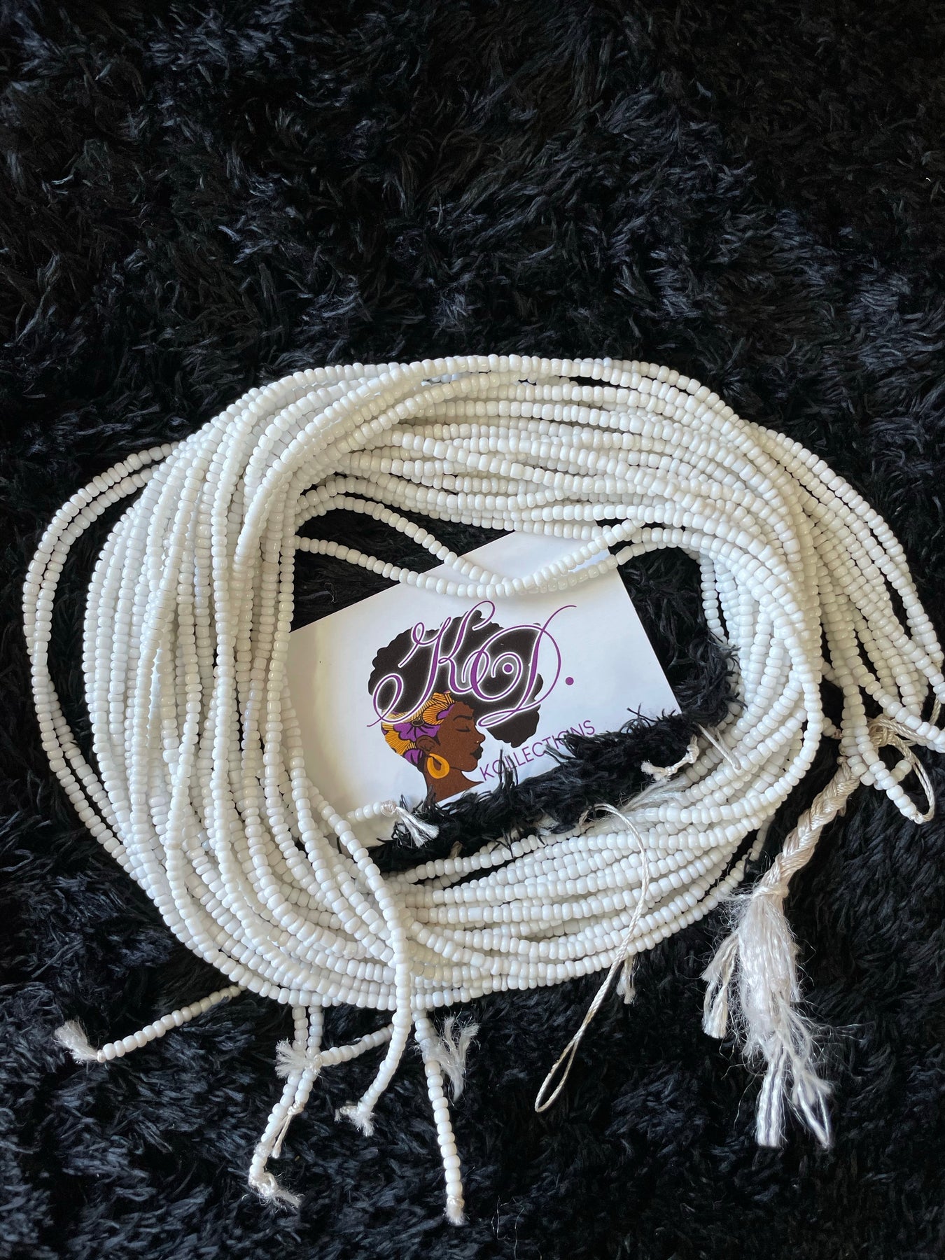 Waist beads are a traditional African accessory that consist of small glass beads on a string or wire worn around the waist or hips. They come in different colors and shapes and may also include decorative stones, crystals, or charms.