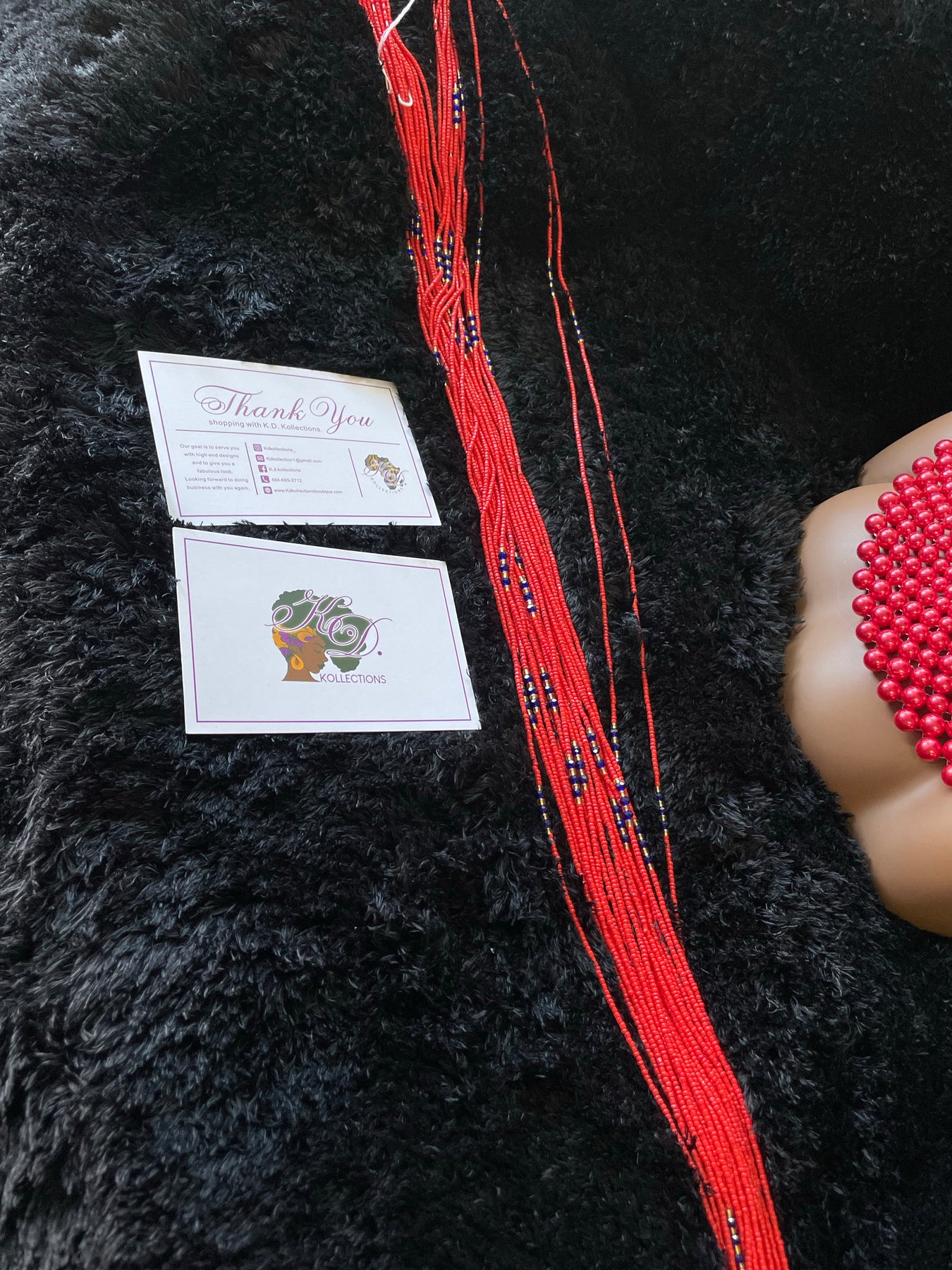 Waist beads are a traditional African accessory that consist of small glass beads on a string or wire worn around the waist or hips. They come in different colors and shapes and may also include decorative stones, crystals, or charms.