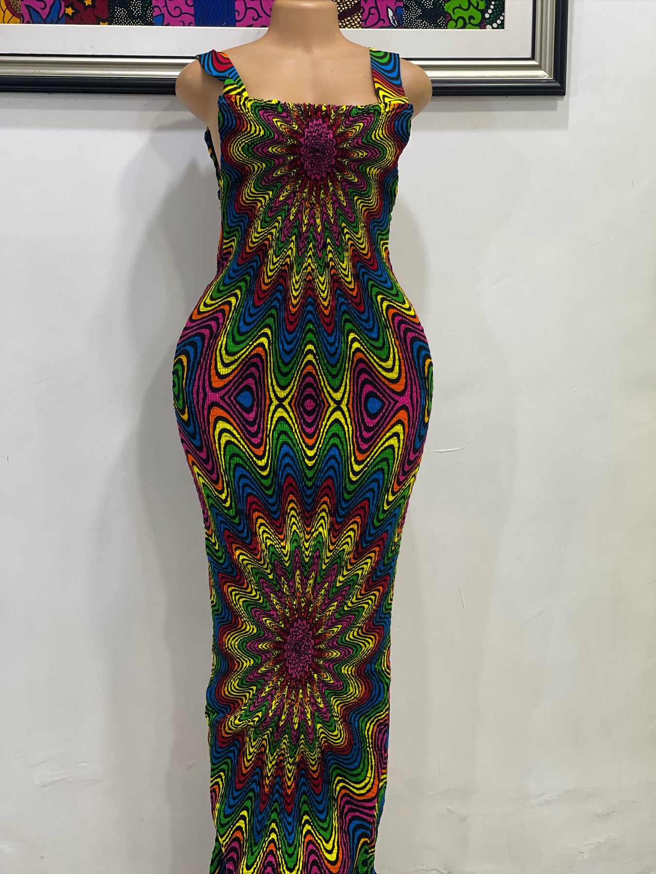 Beautiful African print elasticated bodycon is extremely flattering for all beautiful body types.