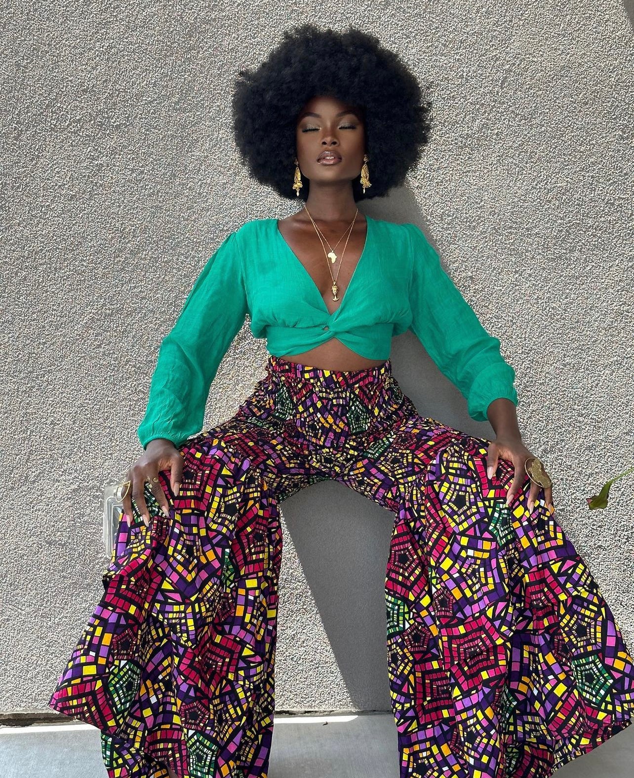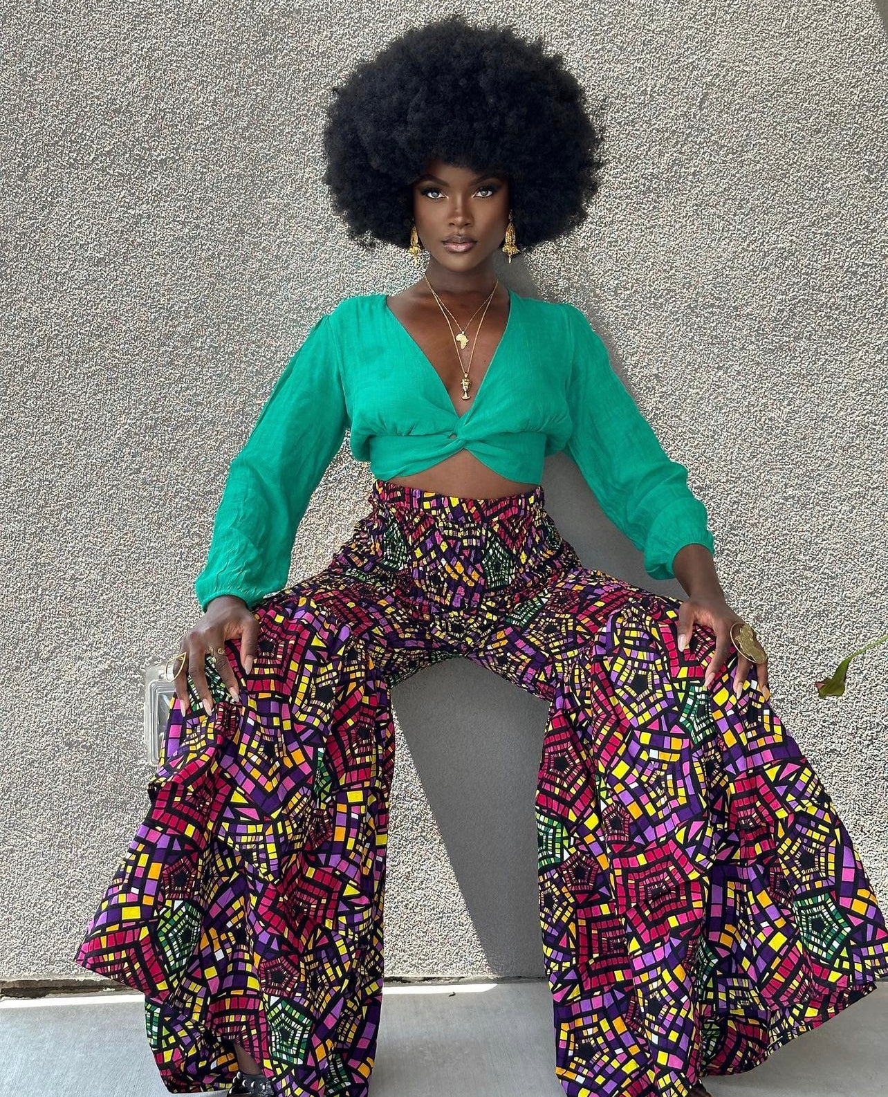 This beautiful flare legs pant is made with beautiful African Ankara print material. The pant has elastic from waist to knees and the bottom is a full flare leg. It’s stretchy and fits any body type like a glove. Very long to the floor. Two full layers at the bottom.