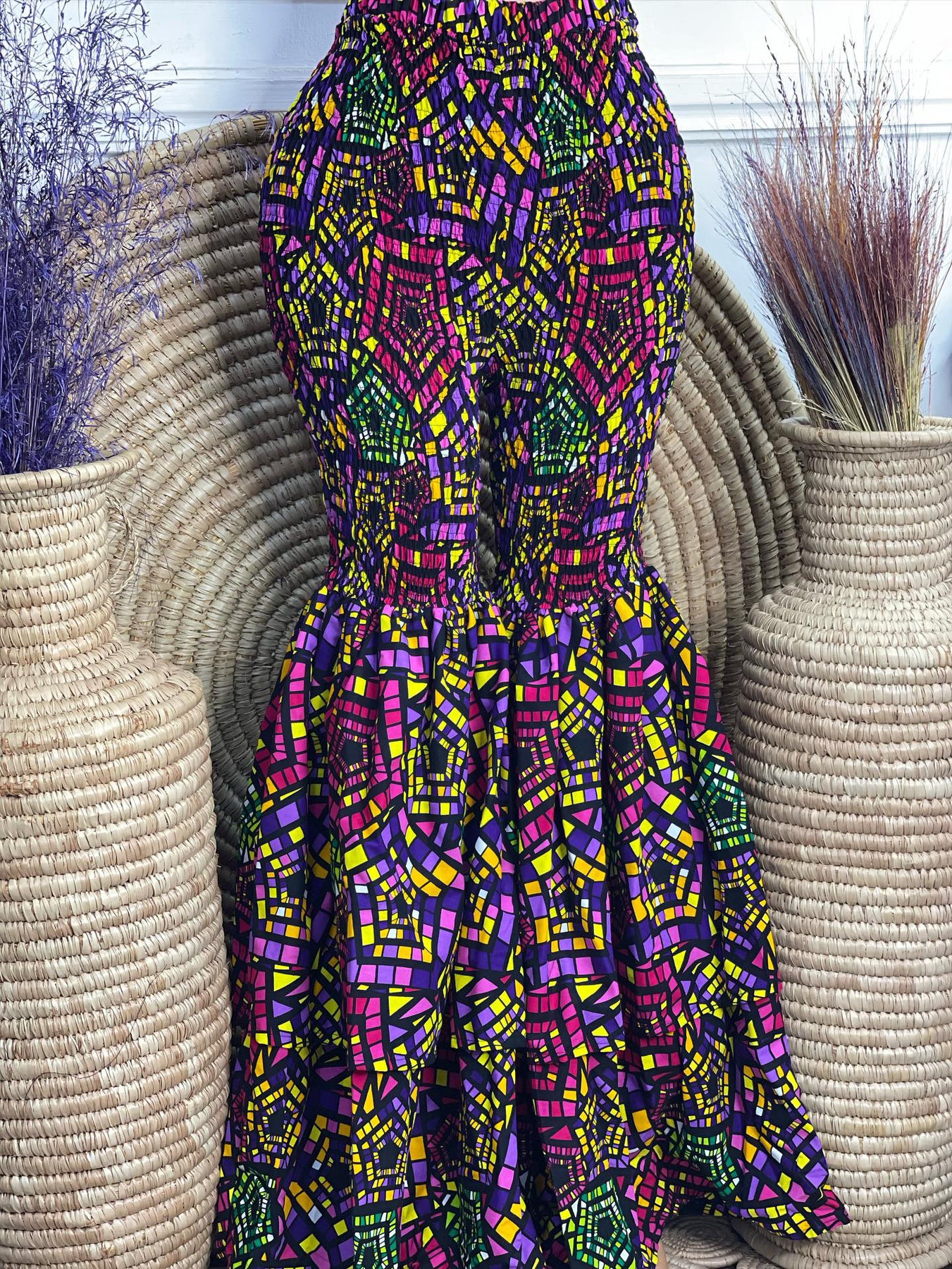 Fabric placement may vary from the pictured item due to the irregular patterned nature of African fabrics. And also fabric color may vary depending on your device.