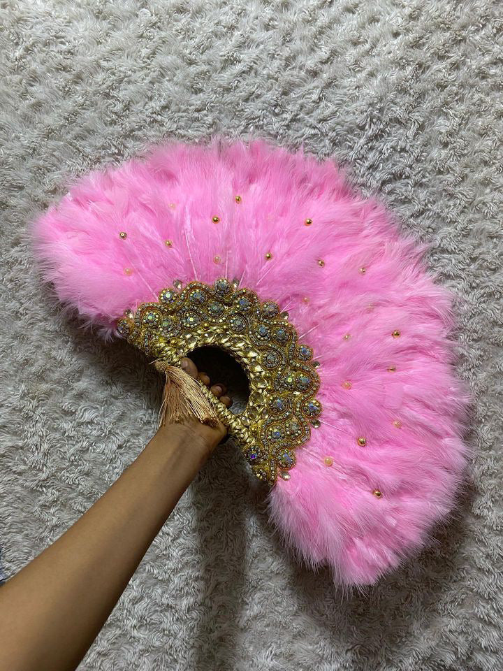 African Traditional Weddings Bridal Feather Hand Fan. Classic Traditional Engagement Feather Hand Fan.