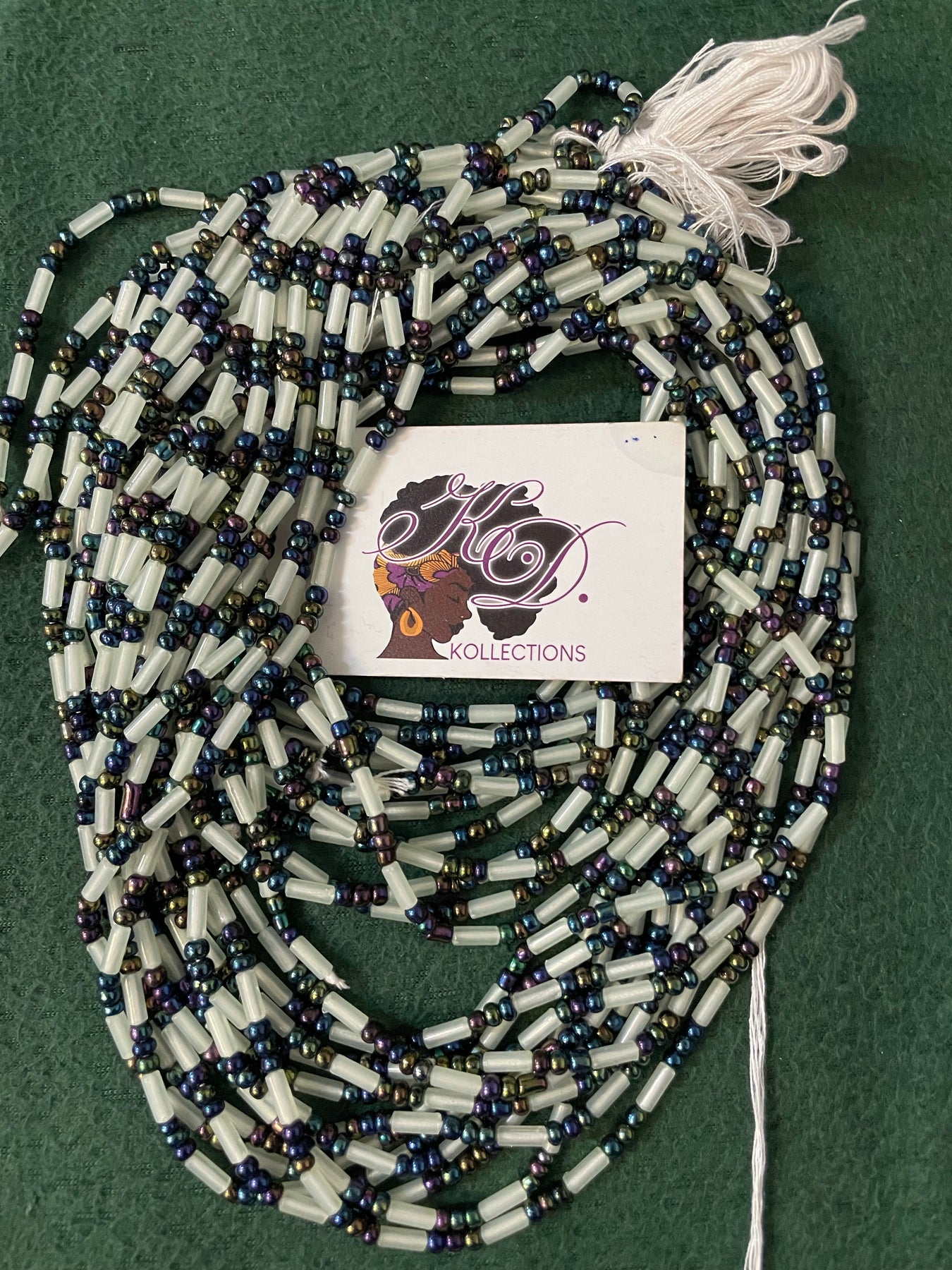 Waist beads are a traditional African accessory that consist of small glass beads on a string or wire worn around the waist or hips. They come in different colors and shapes and may also include decorative stones, crystals, or charms.
