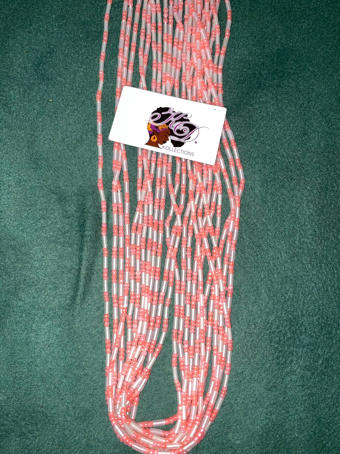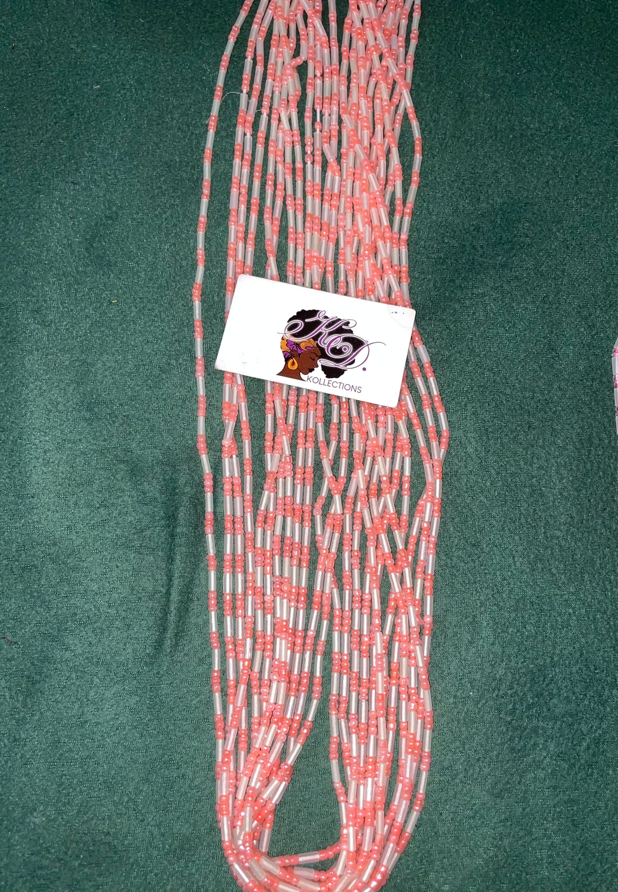 Waist beads are a traditional African accessory that consist of small glass beads on a string or wire worn around the waist or hips. They come in different colors and shapes and may also include decorative stones, crystals, or charms.