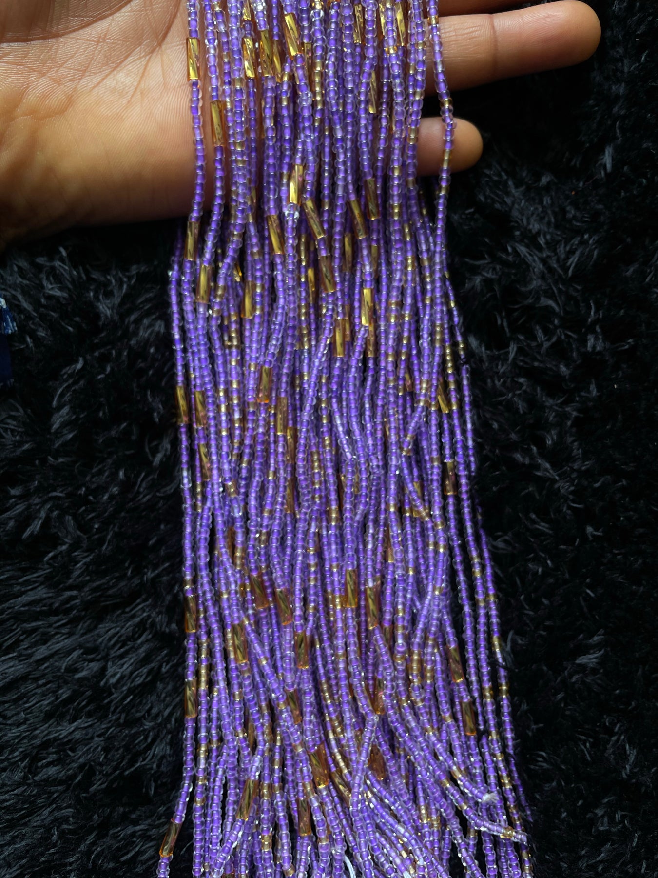 Waist beads are a traditional African accessory that consist of small glass beads on a string or wire worn around the waist or hips. They come in different colors and shapes and may also include decorative stones, crystals, or charms.