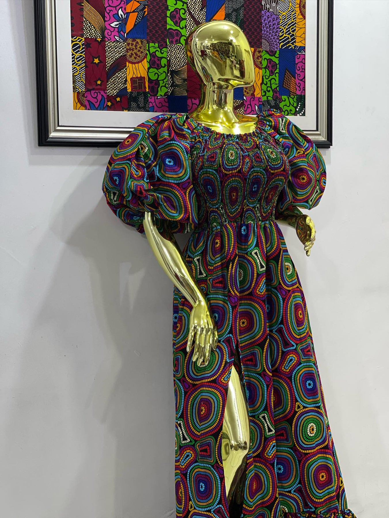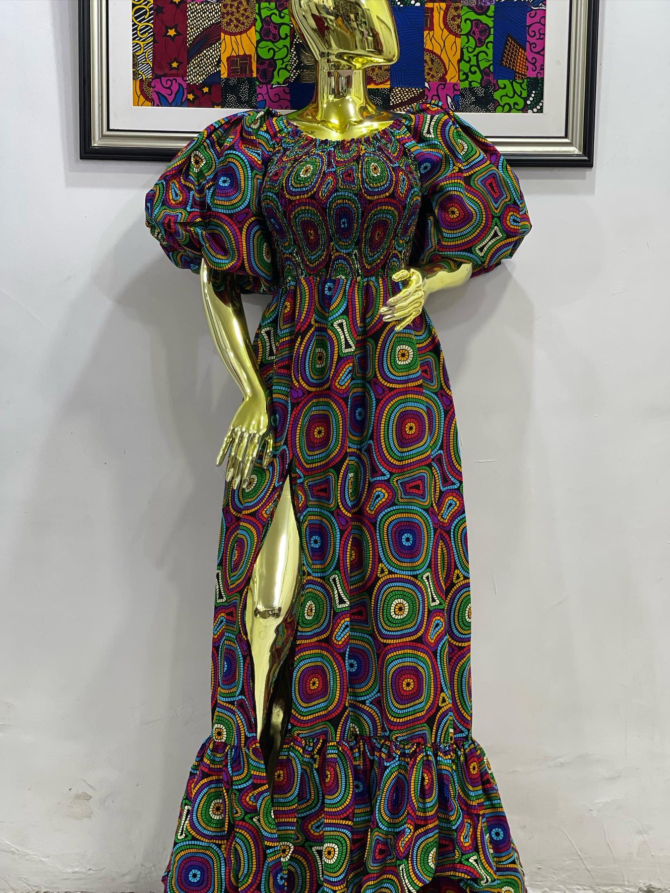 African print stretchy puffy sleeves long maxi dress.🔥