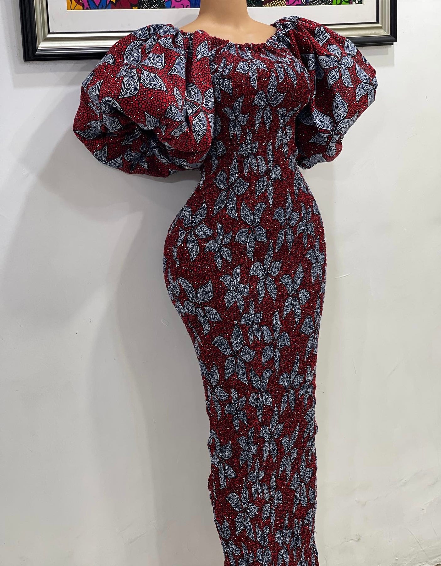African print stretchy puff sleeve bodycon dress.