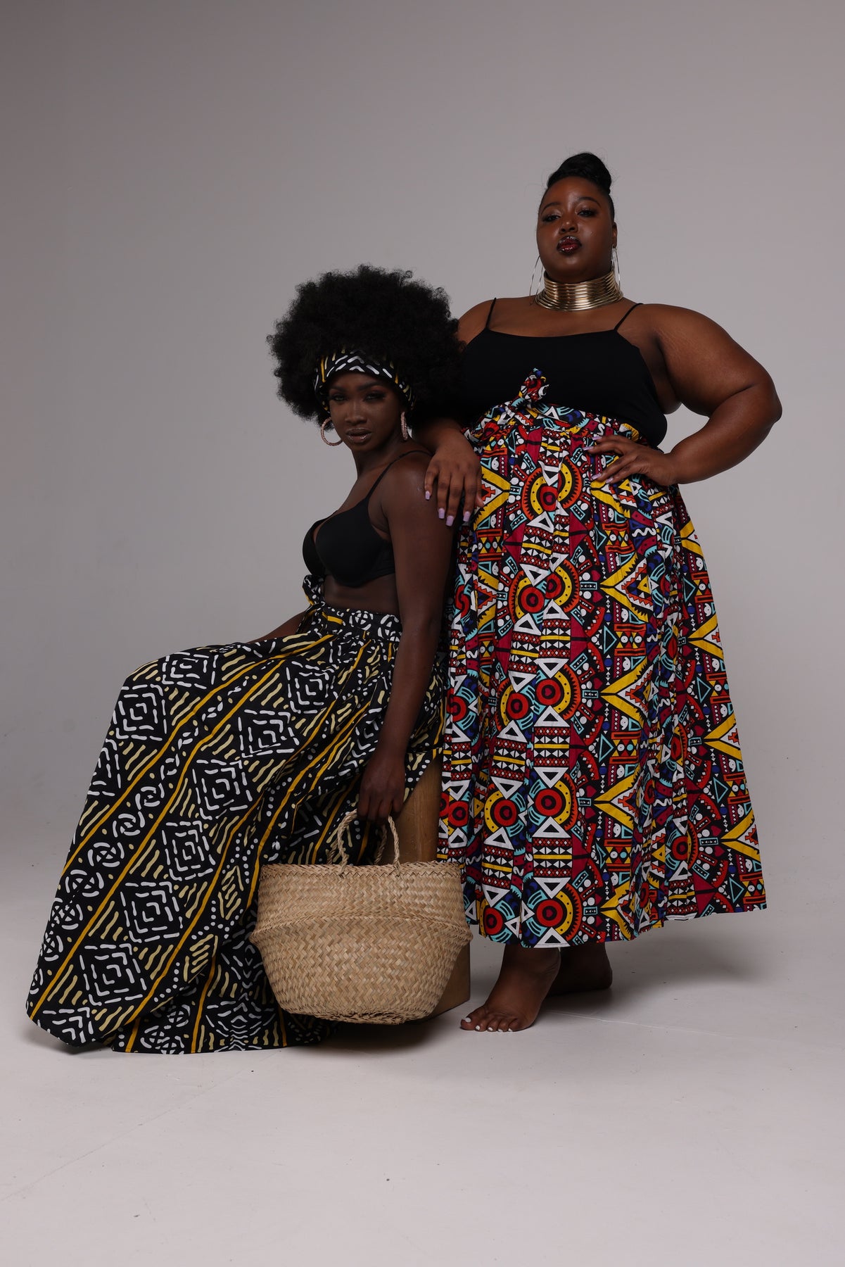 beautiful and elegant african print skirt. Very unique addition to any wardrobe. Very comfortable. It comes with two convenient pockets and a matching headscarf. The skirt is 39” in length and the elastic waist with two straps fits up to a 38” waist. Made of 100% cotton fabric from Ghana 🇬🇭