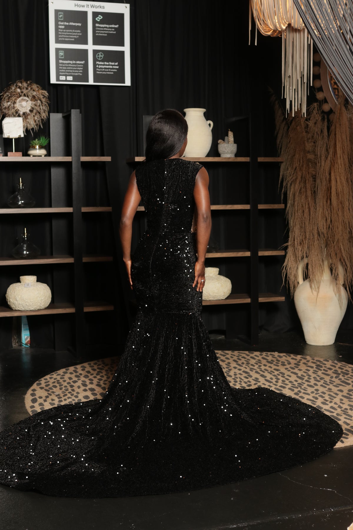 Black velvet sequins mermaid prom dress.