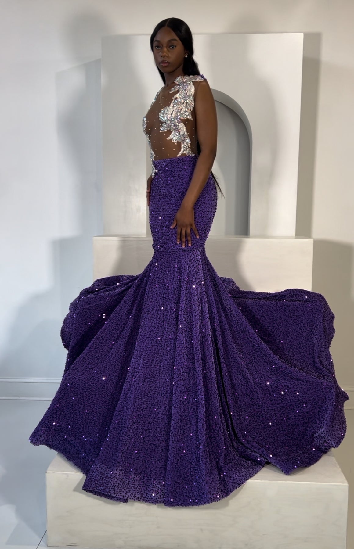 A shiny, beading embellishments at the top, this beautiful dress will highlight your figure's advantages and steal the spotlight! A spectacular, long slit exposes the leg and presents a phenomenal silhouette in motion. The asymmetrical bottom of the dress is finished with a full ruffle. The lightweight fabric of the dress ensures a comfortable yet elegant fit. Its mermaid silhouette is perfect for highlighting curves and will make you the center of attention at the next special event.