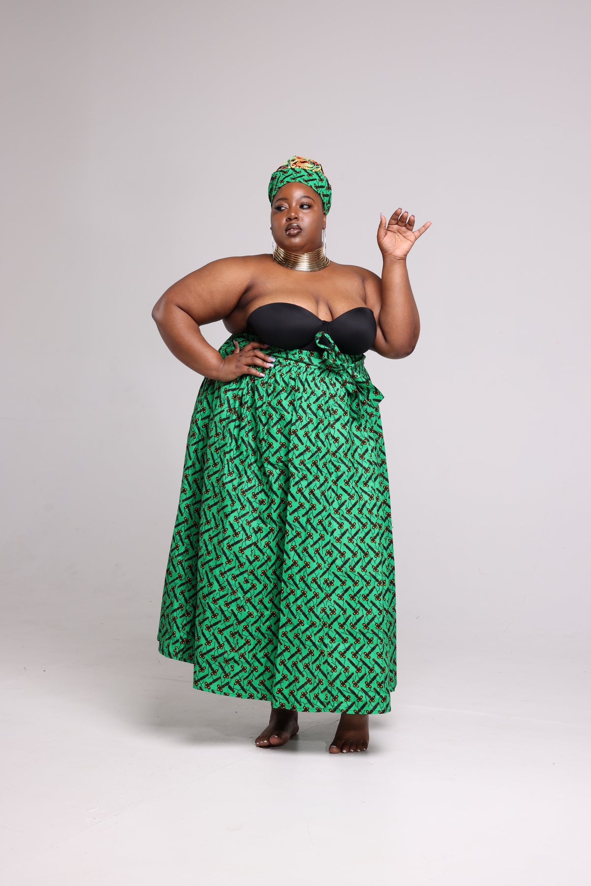 beautiful and elegant african print skirt. Very unique addition to any wardrobe. Very comfortable. It comes with two convenient pockets and a matching headscarf. The skirt is 39” in length and the elastic waist with two straps fits up to a 38” waist. Made of 100% cotton fabric from Ghana 🇬🇭