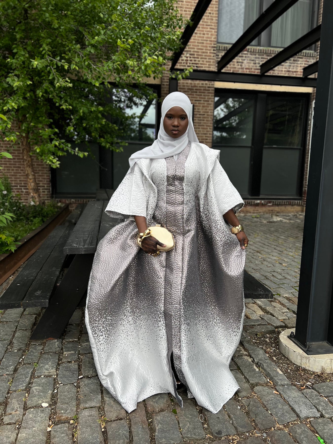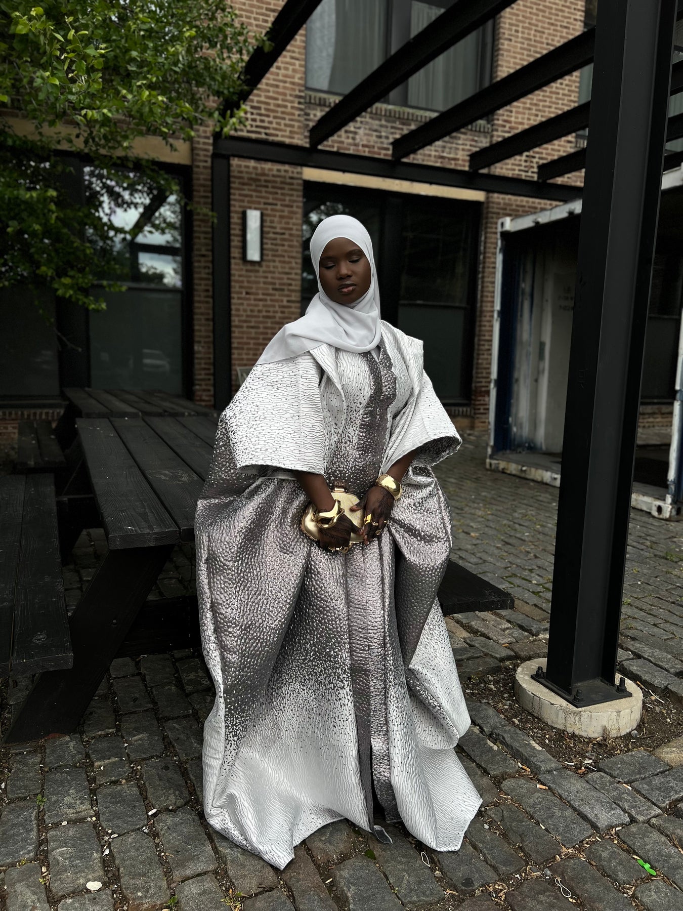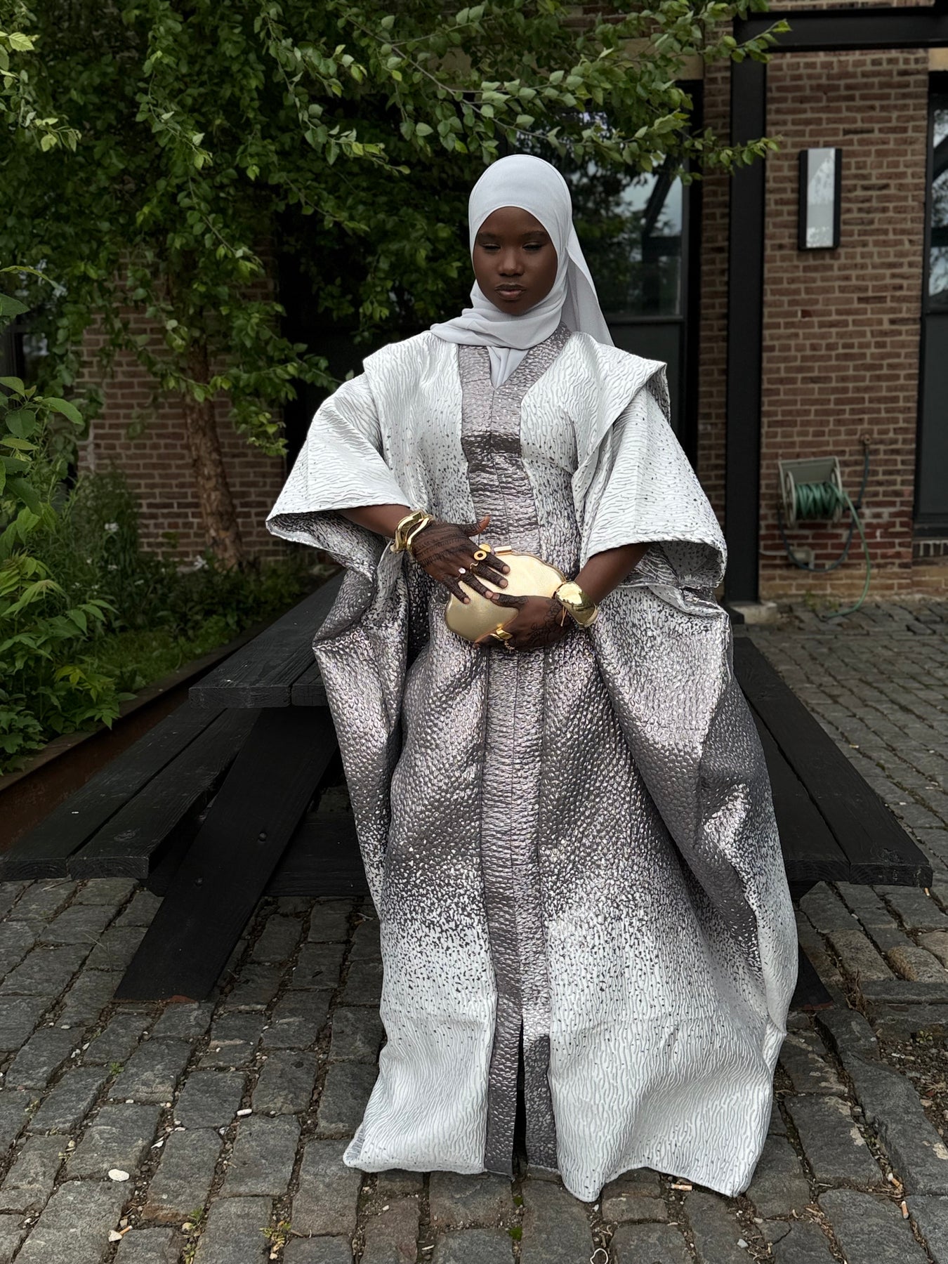 Discover elegance and tradition with this luxury African kaftan, handcrafted from a unique metallic brocade fabric. This one-of-a-kind piece combines modern sophistication with a classic boubou silhouette, offering both comfort and style. Perfect for special occasions, cultural celebrations, or making a bold fashion statement, this oversized kaftan is designed for the fashion-forward woman who values exclusivity and heritage.