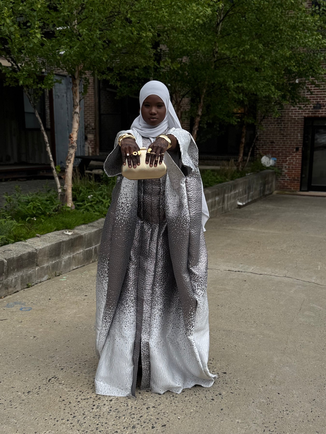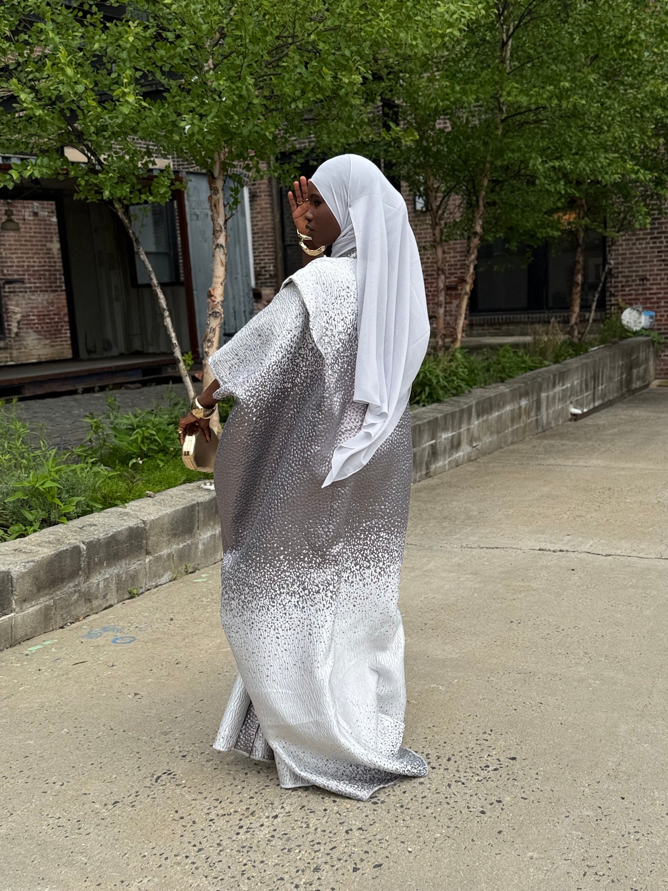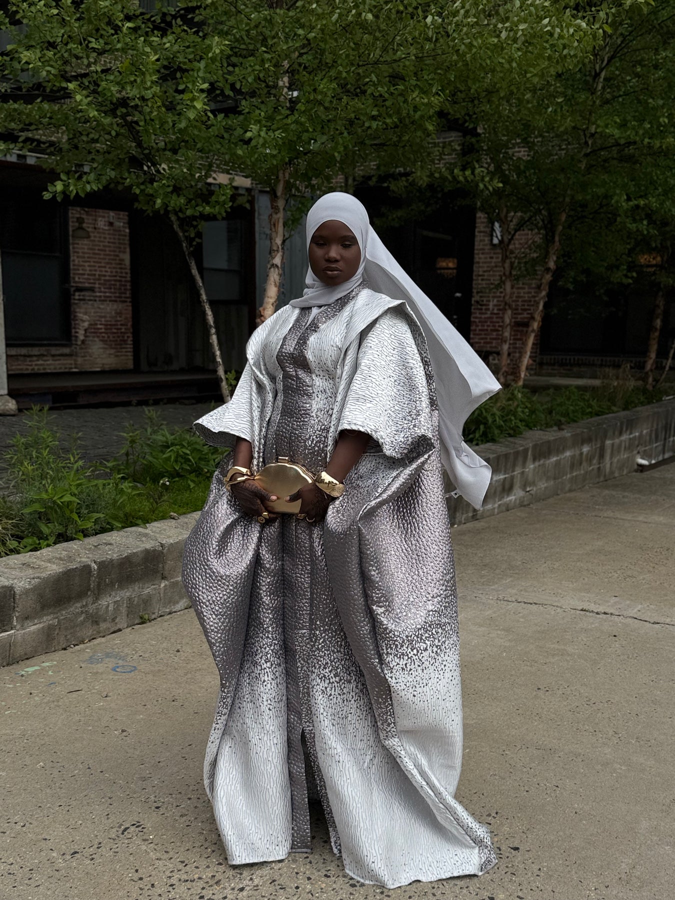 Discover elegance and tradition with this luxury African kaftan, handcrafted from a unique metallic brocade fabric. This one-of-a-kind piece combines modern sophistication with a classic boubou silhouette, offering both comfort and style. Perfect for special occasions, cultural celebrations, or making a bold fashion statement, this oversized kaftan is designed for the fashion-forward woman who values exclusivity and heritage.