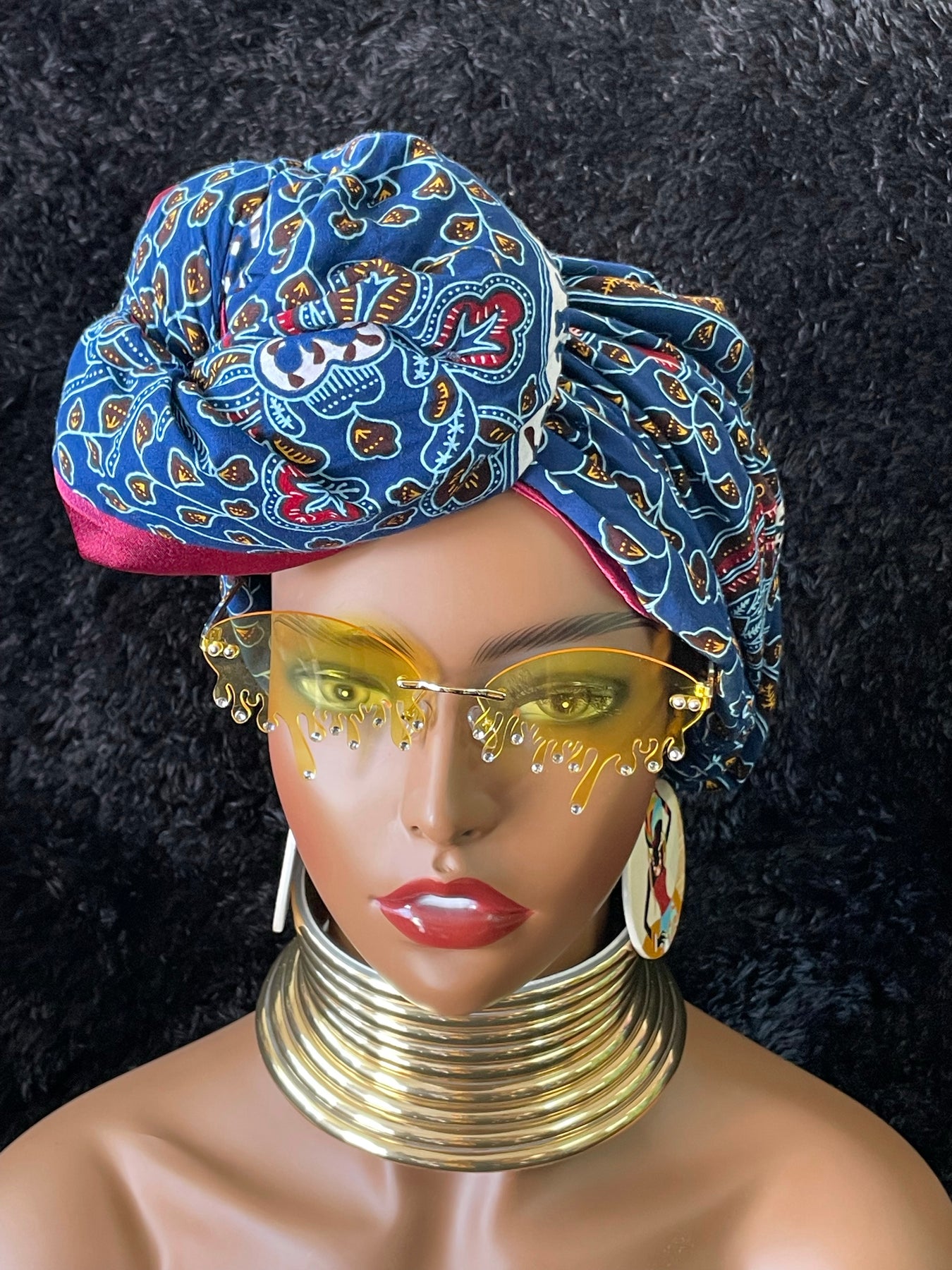 Beautiful ankara prints headwraps and pre-tied turbans that add elegance and beauty to your outfit. Each comes with optional face mask that has adjustable elastic for better fitting. The headwraps are head scarfs and they measure 20inches in width and 72inches in length and the pre-tied turbans fits any average size head of 21 to 22 inches in circumference with elastic in the back for comfortable fitting. The turbans are also lined with satin. It will be great if you can attach your head circumference when you order so as to have it customized to fit your head properly.