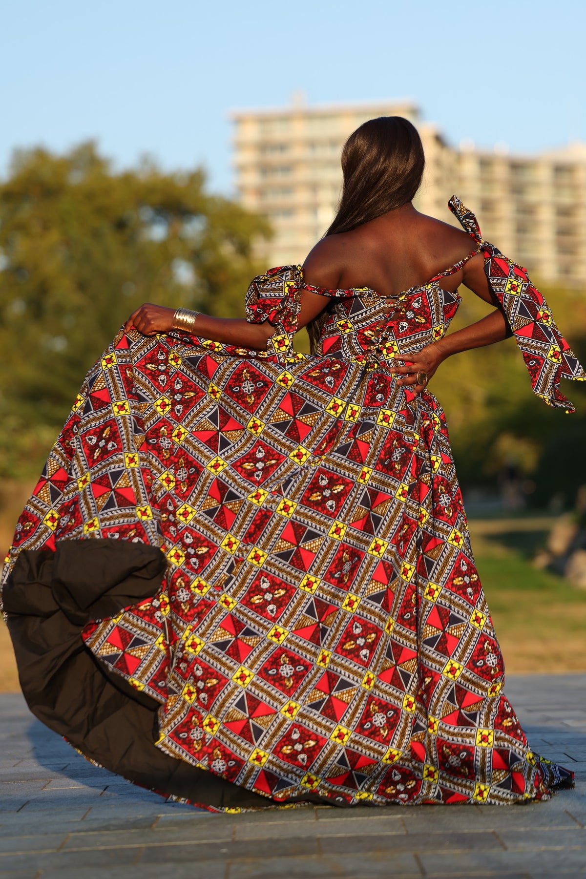 -Step into elegance with our beautiful corset African Print Floor Length Maxi Dress, a stunning fusion of tradition and contemporary style. Crafted from exquisite African fabric, this dress showcases a vibrant and intricate print that celebrates the rich cultural heritage of the region. The tied spaghetti sleeves on the shoulder or off the shoulder adds a modern twist, providing a unique and eye-catching silhouette that flatters every figure. This beauty has zipper and corset at the back to help you snatch that waist sis.